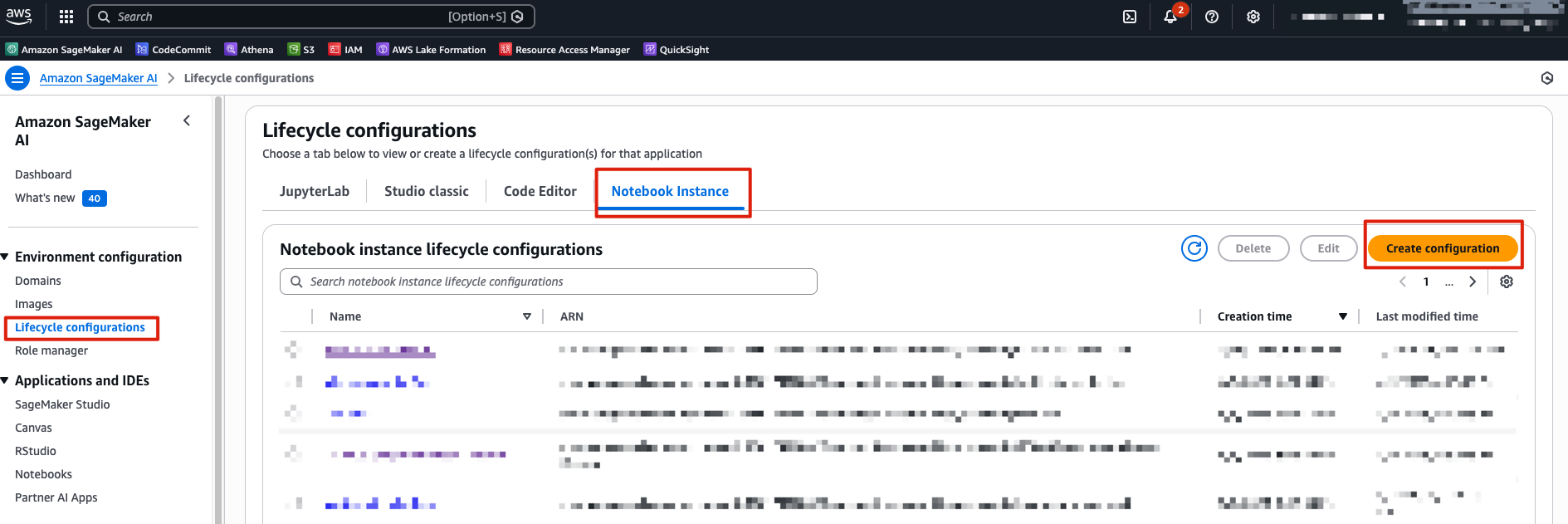 - sagemaker lifecycle configurations 생성