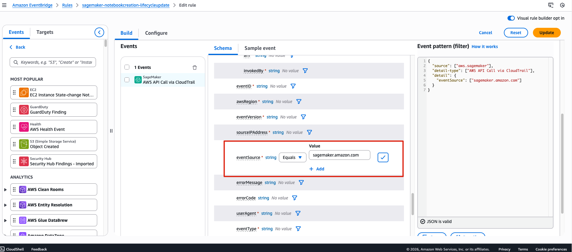 "eventSource": ["sagemaker.amazonaws.com"],