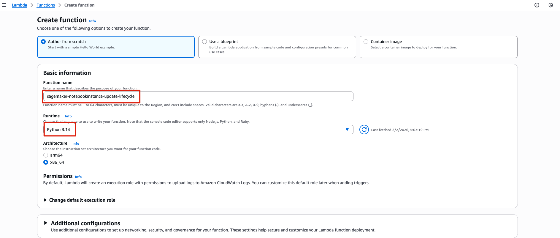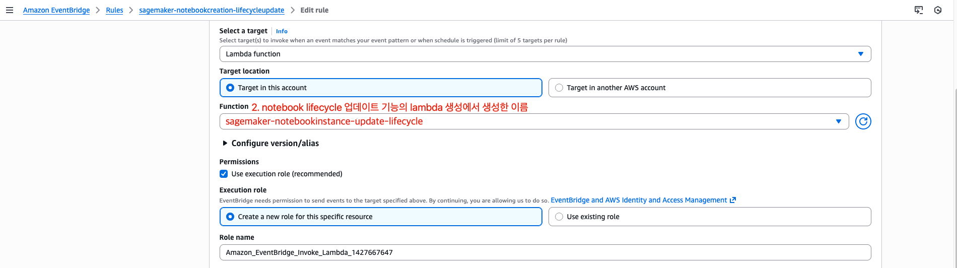 function name: sagemaker-notebookinstance-update-lifecycle (이름은 자유)